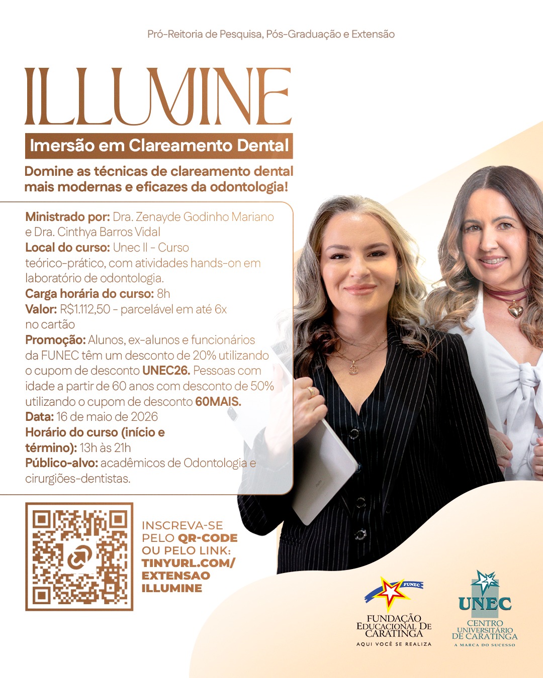 Alunos, ex-alunos e funcionários da FUNEC têm um desconto de 20% utilizando o cupom de desconto UNEC26. Pessoas com idade a partir de 60 anos com desconto de 50% utilizando o cupom de desconto 60MAIS.