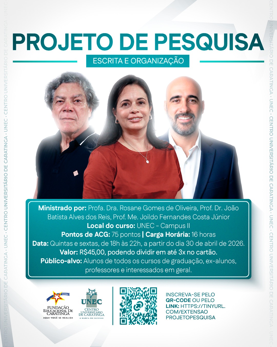Prof. Me. Joildo Fernandes Costa Júnior: Mestre e Professor/Pesquisador do UNEC. Graduação em Engenharia Elétrica.