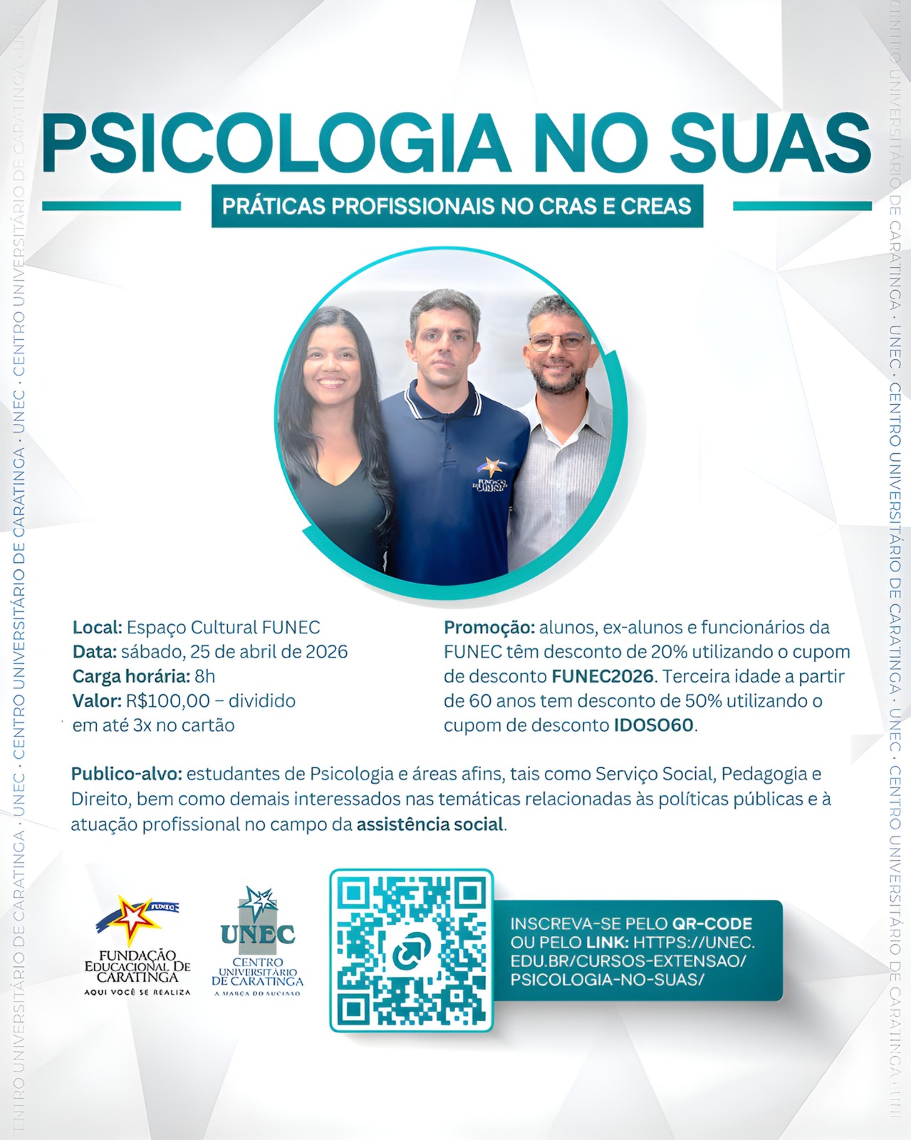 Ex-alunos, egressos e funcionários da FUNEC têm desconto de 20% utilizando o cupom de desconto FUNEC2026.