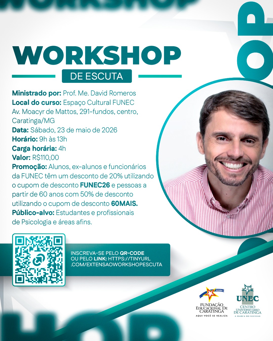 Alunos, ex-alunos e funcionários da FUNEC têm um desconto de 10% utilizando o cupom de desconto UNEC26 e terceira idade 60+ tem 50% de desconto utilizando o cupom de desconto IDOSO60.